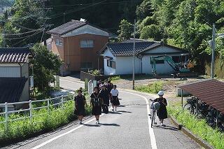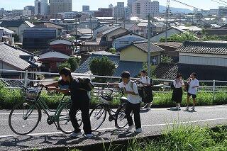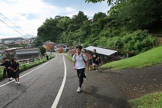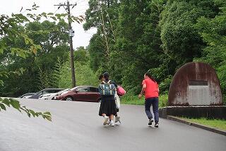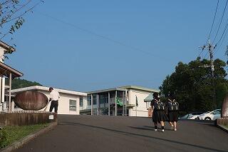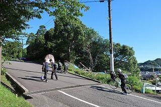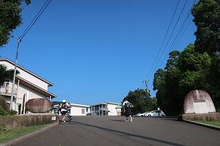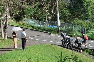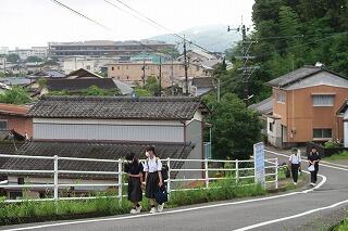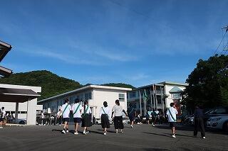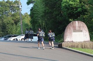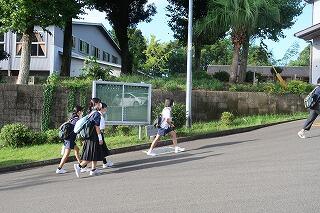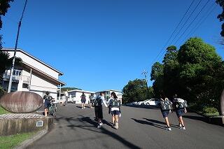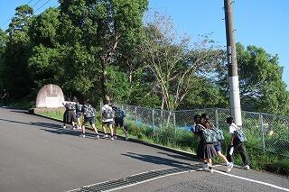 今日も強い日差しが降り注ぐ快晴の空の下、生徒は「希望の坂道」を上って登校しています。日中の気温もかなり高くなりそうです。
