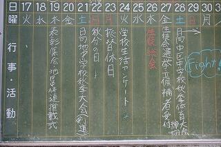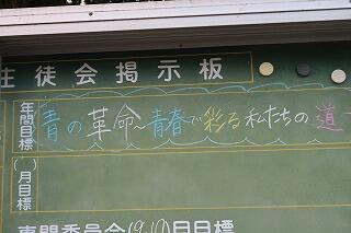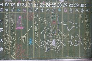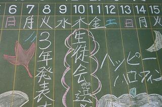 掲示板には10月行事が書いてありました。生徒会役員が月行事を書き換えてくれます。10月をイメージする絵も描いてあり、心が和みます。ありがとうございます。