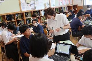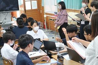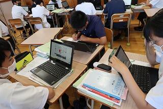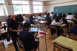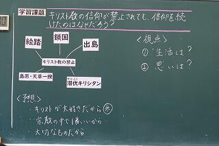 昨日(7月8日(月))2年生の社会科の授業で研究授業がありました。2年生の社会科では「江戸時代が260年続いたのはなぜか」を単元全体の問いとして6月末から勉強しています。この時間の問いは「キリスト教の信仰が禁止されても信仰を続けたのはなぜだろう」で、各自で予想を立て、タブレットを使って調べていました。「社会科=暗記」のイメージが強いと思いますが、令和の日本型教育では、問いを立て、自分で探究し、自分の考えをまとめることを重視しています。昨日の授業はその流れに沿った授業でした。