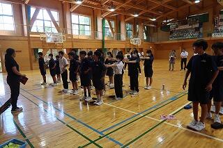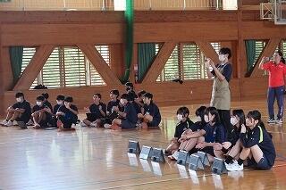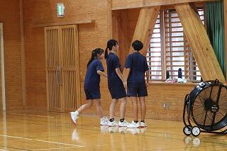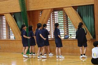 昨日(7月9日(火))の日向市の最高気温は38.5℃、全国1位の暑さでした。その時間、日向中の体育館では地区中体連の研究授業が行われていました。授業は1年生の体育の授業(バドミントン)です。