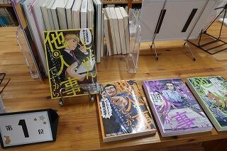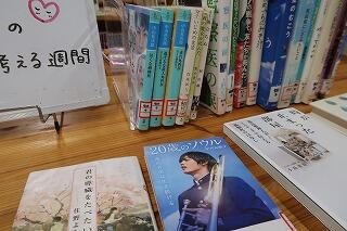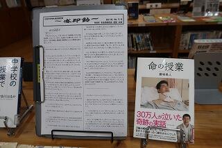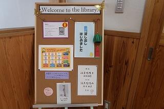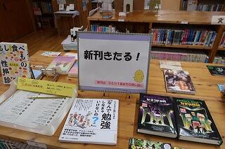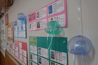 図書館前の掲示物です。新刊本の紹介がしてあり、夏らしい掲示になっています。
