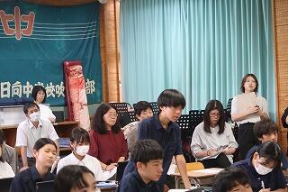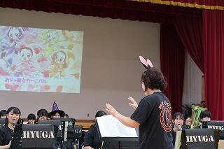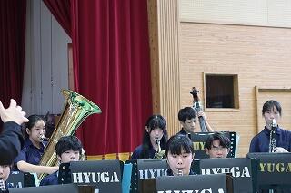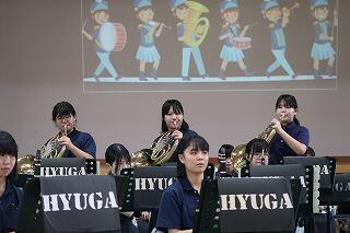 6月23日(日)、日向市文化交流センターにおいて「陸上自衛隊西部方面音楽隊 巡回演奏会」が開催され、多くの皆様が演奏を聴きに来られていました。今回、日向中の吹奏楽部も同じステージに立たせていただき、西部方面音楽隊の方々と2曲演奏させていただきました。また、その際、本校吹奏楽部顧問(音楽科担当)が指揮も振らせていただきました。