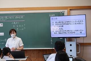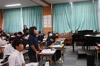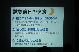 今月、日向中では栄養教諭の先生にお越しいただいて「食育」をテーマとした授業を各学年で行いました。今日(9月27日(金))は3年生の「受験期の食事」の授業でした。これから受験勉強のモードをあげていく3年生にとって大切なことを、クイズ形式でわかりやすく教えていただきました。ありがとうございました。