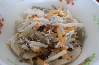 【9月30日(月)】麦ご飯、ひじきの炒り煮、鶏ごぼう汁