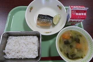 【9月25日(水)】麦ご飯、鯖の塩焼き、へべす、さつま汁