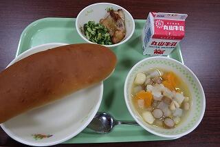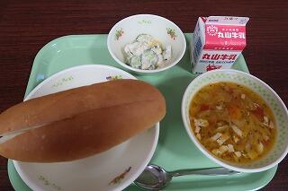 【6月20日(木)】ミルクパン、まめ豆ポトフ、鶏肉の照りマヨ焼き、添え野菜