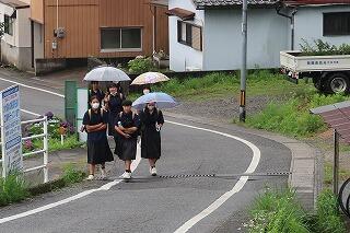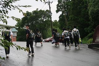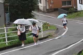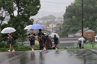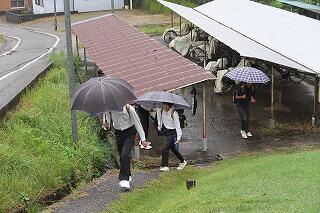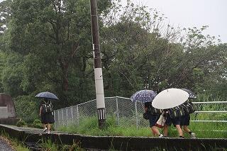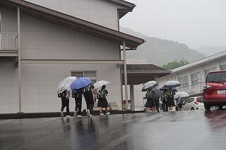 3連休明けの火曜日の朝は降る中での登校でした。傘を差したりカッパを着たり、中には登校途中で雨が強くなり、傘を差さずに登校してくる生徒もいました。風邪を引かないか心配です。