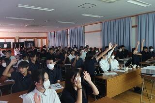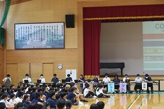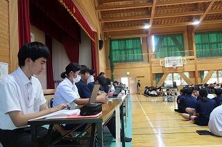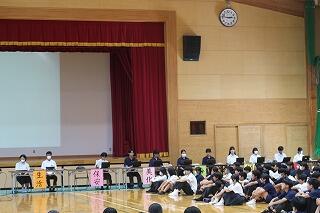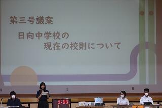 9月26日(木)の6時間目に、今年度2回目となる「生徒総会」を行いました。1学期に行った「生徒総会Ⅰ」では生徒会の今年度のスローガンや専門委員会の年間活動目標や計画を話し合いました。今回の「生徒総会Ⅱ」では、日向中世みんながより良い学校生活を送るために校則や施設などへの要望について意見を出し合いました。校則については、今後け「校則検討委員会」で検討していきます。