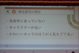 また今回の生徒総会では日向中のマスコットキャラクターのリニューアルについて協議し、討議後、採決をとり、賛成多数で可決されました。今後、新キャラクターの募集を行うことになります。