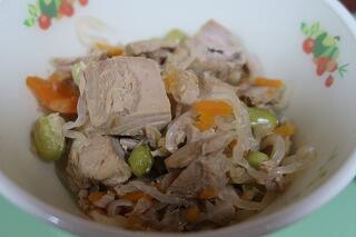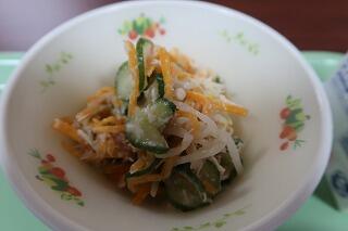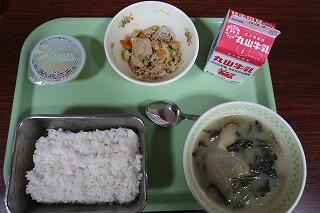 【6月28日(金)】麦ご飯、鶏肉のおろし和え、ごま味噌スープ