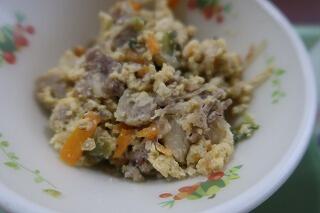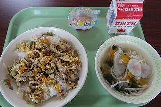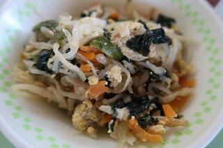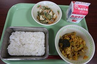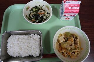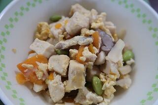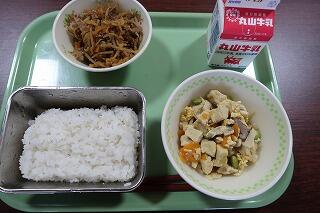 【6月17日(月)】麦ご飯、高野豆腐の卵とじ、シャキシャキ炒め