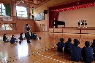 9月の3年生の体育の授業は「創作ダンス」でした。今日はその発表会があり、グループごとに披露しました。学級担任の先生も参観し、写真を撮っていました。週末の学級通信で紹介されるのでしょうか。