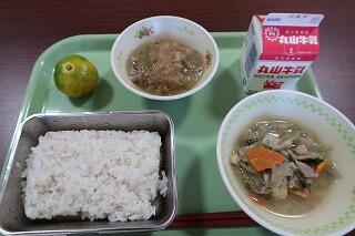 【10月9日(水)】麦ご飯、揚げ出し豆腐のみぞれあんかけ、豚汁、みかん