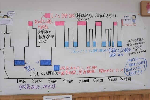 日向中では、先日の表彰集会の折に、養護教諭が「睡眠の大切さ」について話をしました。その中で、「睡眠と学力」や「睡眠と成長ホルモンの分泌」も取り上げ、生徒はよく話を聞いていました。2学期には睡眠についての講演も計画しています。