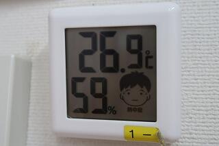 今日の日向は曇り空です。校舎内(南校舎1階玄関付近)の気温は26℃程度ですが、今日は湿度が高く、蒸し暑さを感じます。
