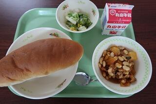【6月25日(火)】黒糖パン、ジャガイモのチーズ煮、もぐもぐビーンズサラダ