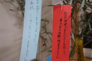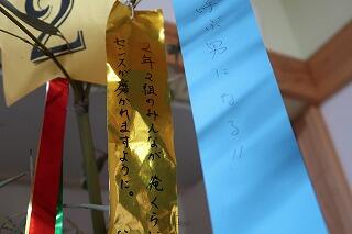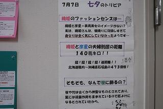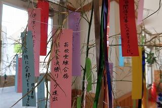 昨日(7月7日)は七夕(たなばた)でした。昨晩は「織姫」と呼ばれる「白鳥座のデネブ」と「彦星」と呼ばれる「わし座のアルタイル」も よく見えいていました。生徒会役員が学年ごとに準備した笹竹に、願い事を書いています。今週は参観週間です。来校された際にはご覧ください。