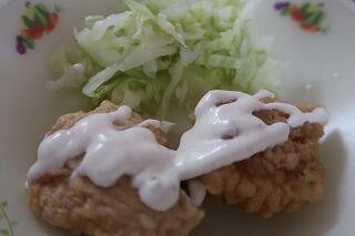 【7月8日(月)】麦ご飯、ズッキーニの味噌汁、チキン南蛮、添え野菜 ※チキン南蛮の日