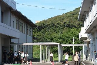 今日は5時間授業でリフレッシュデーです。生徒が下校する時間も日差しが強く降り注いでいました。日陰でも31.6℃でした。