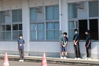 海の日と合わせた3連休が終わり、1学期最後の週が始まりました。今朝も生徒会活動としての「あいさつ運動」を行っています。担当は2年3組です。先週末から昨日まではぐずついた天気が続いていましたが、今朝は久しぶりに青空の下での登校です。週末、県中総体の屋外競技は延期となったので、晴れているのはありがたいことですが、この後は日差しが強くなり、暑くなりそうです。