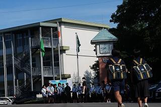 9月最終日です。週末の地区秋季大会には多くの生徒が出場していましたが、その疲れを感じさせないいつもどおりの登校風景でした。優勝した部や入賞した生徒に声をかけるととても良い表情で結果を報告してくれました。