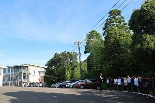 サッカー部は雨の日とテスト期間以外は毎日「あいさつ運動」を行ってくれています。ありがとうございます。