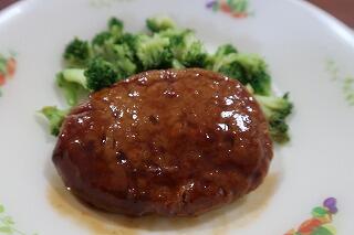 【7月17日(水)】麦ご飯、ハンバーグ、添え野菜(ブロッコリー)