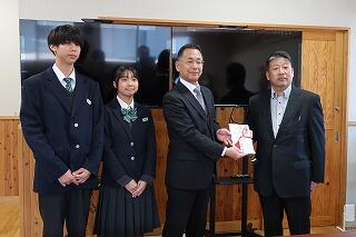 日向中生徒会は、「能登半島地震義援金のための有償ボランティア」を2月末から3月にかけての週末に5日間行いました。そこで得た「謝金81,206円」を義援金として日向市役所福祉課に届けました。その報告会を3月14日(木)に行いました。活動の場をご提供いただきました企業や地域の皆様、ご協力ありがとうございました。