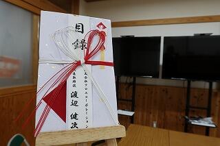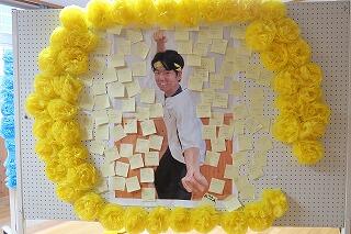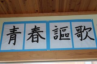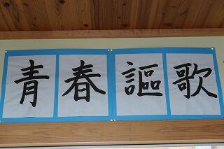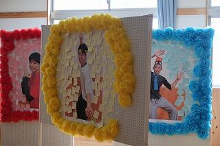 多数の祝詞が届き、体育館の後方の壁に掲示してあります。