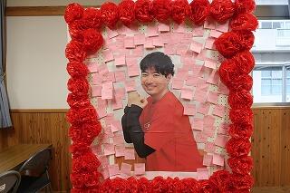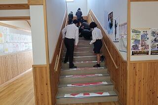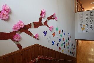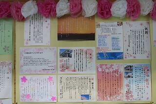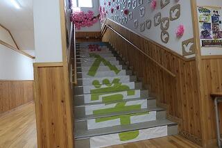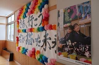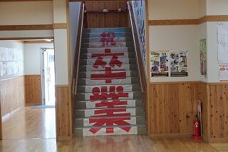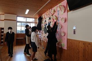 生徒会役員や広報委員会の生徒は生徒玄関や階段に卒業式に向けた掲示を行いました。
