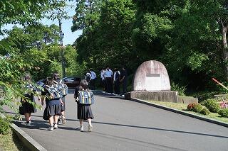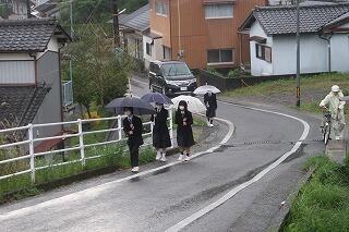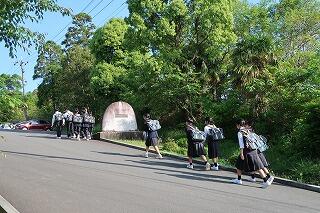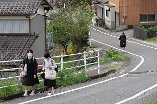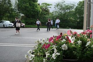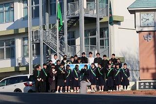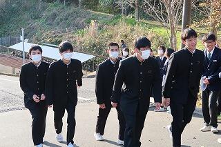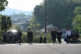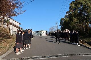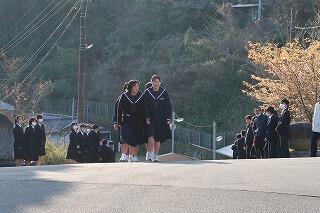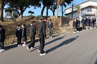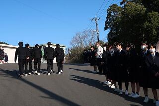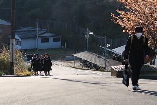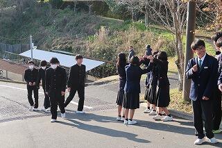 今朝は多くの在校生が希望の坂道に並び、卒業生にお祝いの声をかけていました。