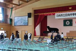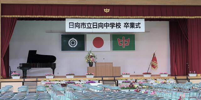 今日は日向市立日向中学校第63回卒業式です。多数のご来賓にご臨席いただき、卒業生と保護者、在校生が体育館に集合して挙行いたします。