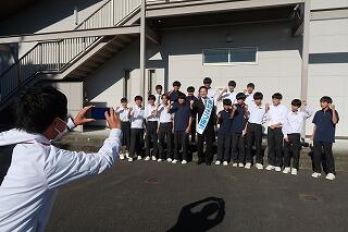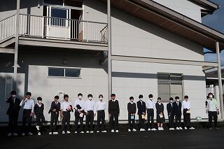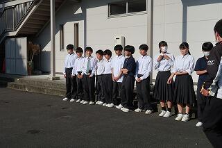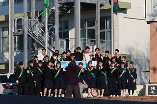 今日のあいさつ運動の担当は3年3組でした。終わった後は学級担任と生徒会担当職員が集合写真を撮っていました。