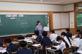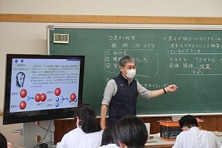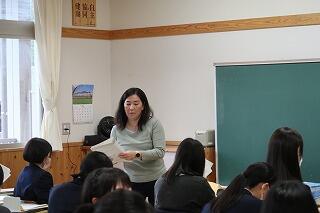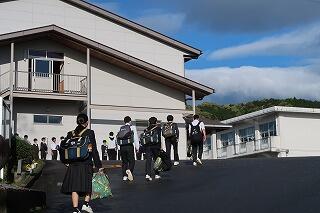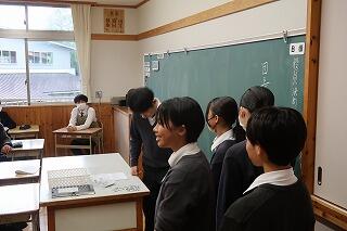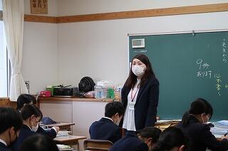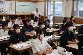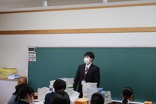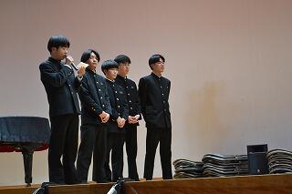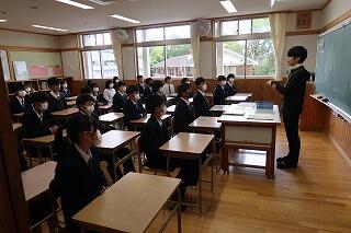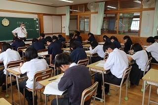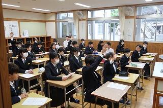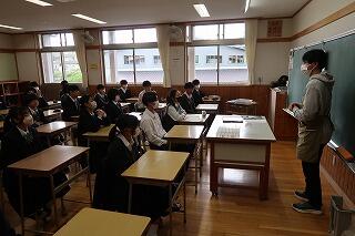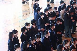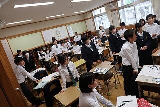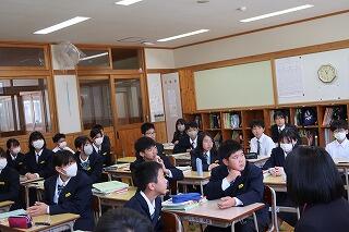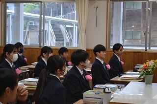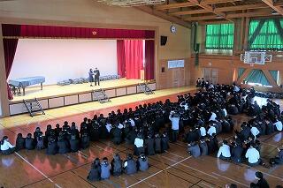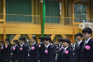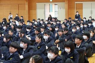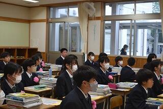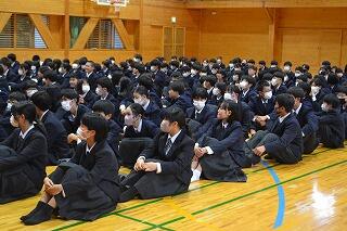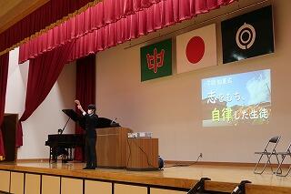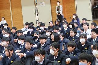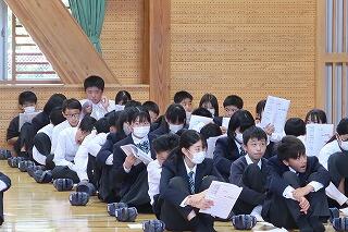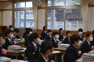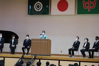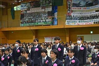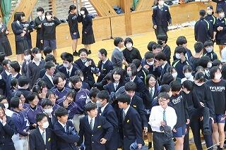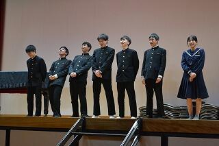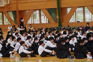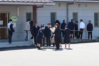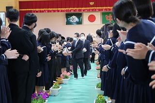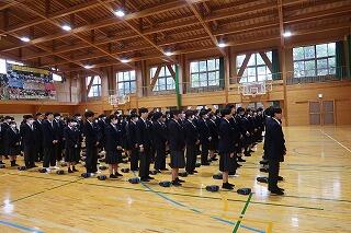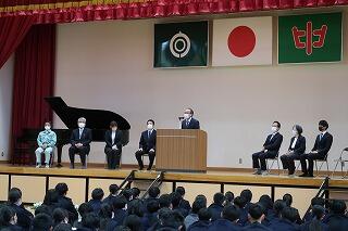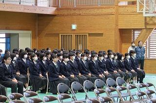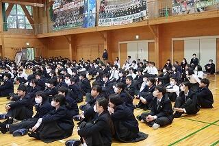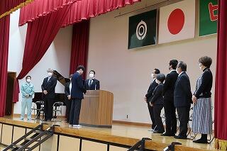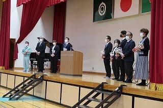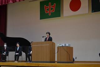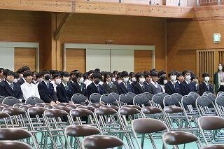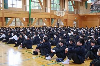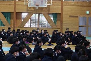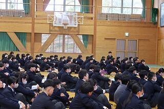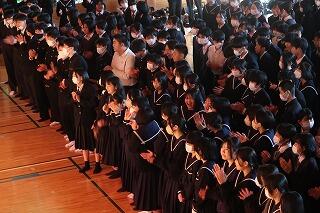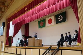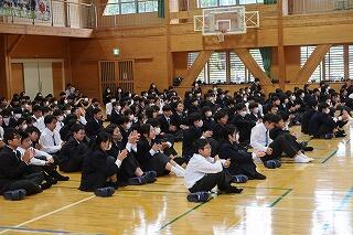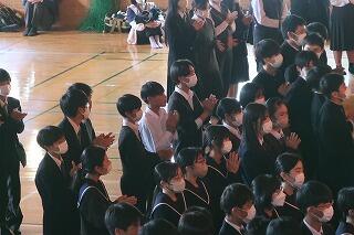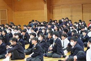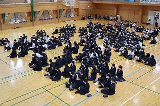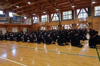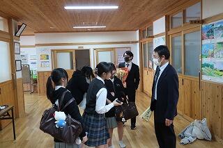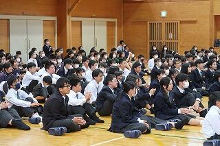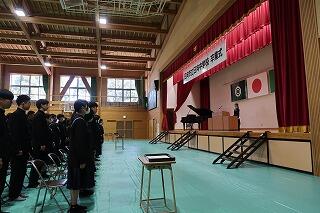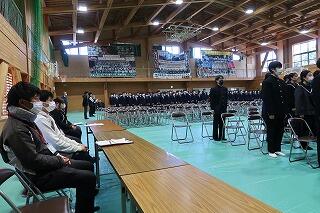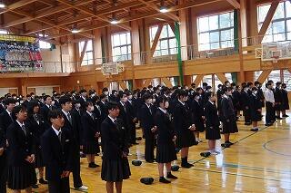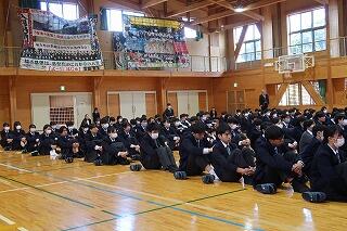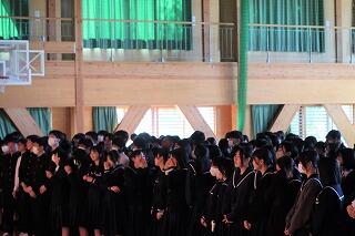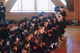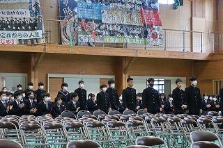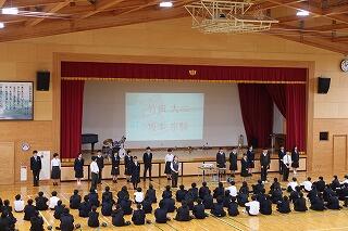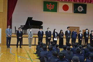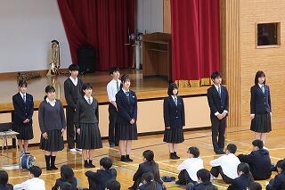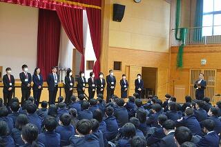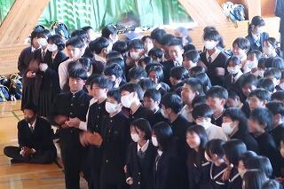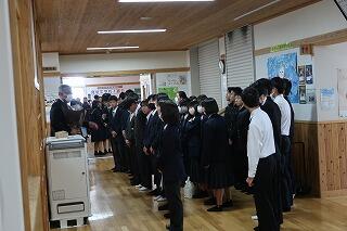 3月29日(金)、1・2年生と卒業生が登校し、この春の異動で転出する先生たちの離任式を行いました。