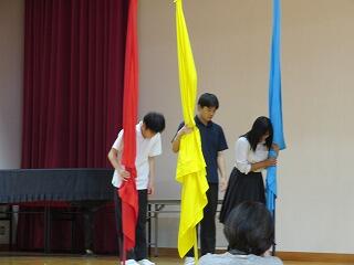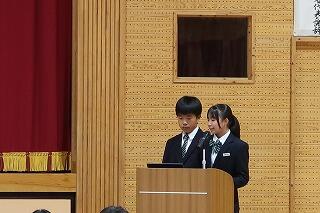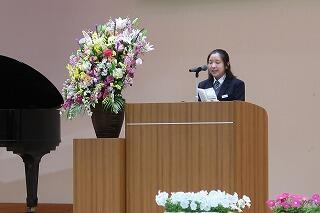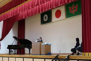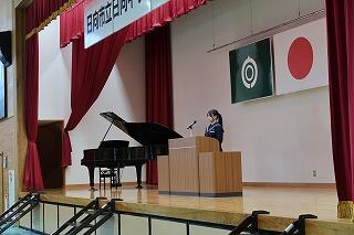 3年生の司会に続き、「主張」が始まりました。お世話になった先生に伝える場面もあり、「先生」もステージに登場しました。