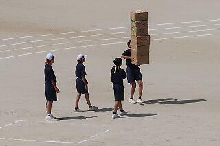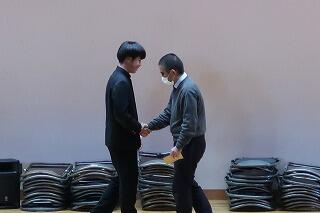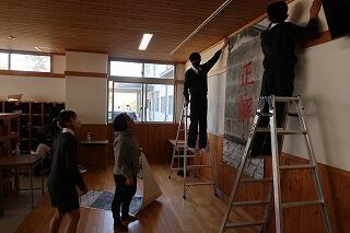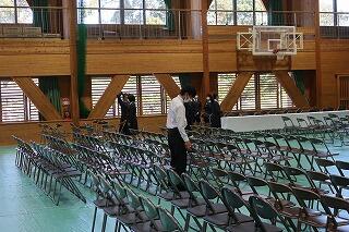 午後からは1・2年生が卒業式の準備を行い、2年生は式場である体育館の準備をしました。