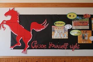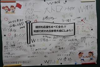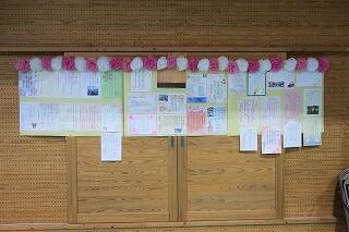 各学年ではプログラム委員会が中心となり、学年の目標を決めています。このうち、2年生と3年生は、廊下に学年目標を掲示しています。