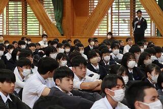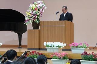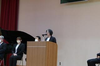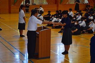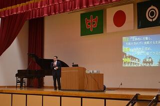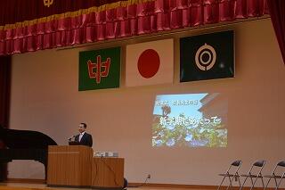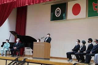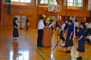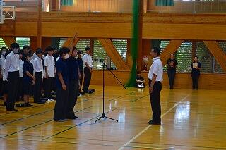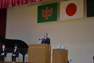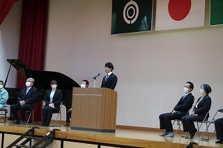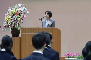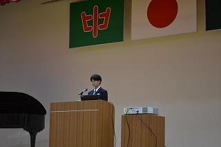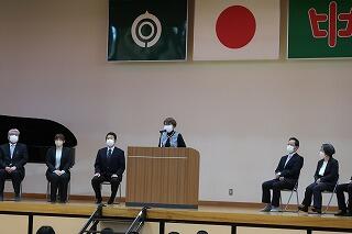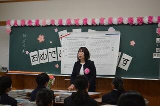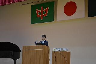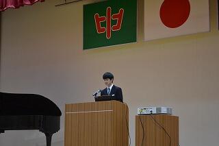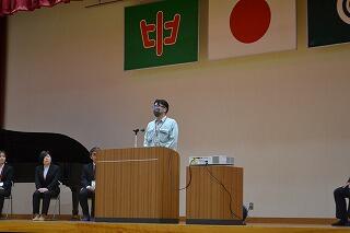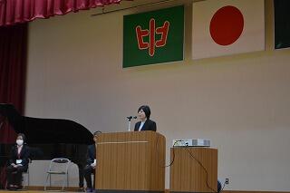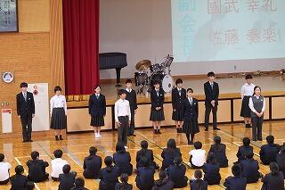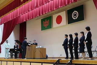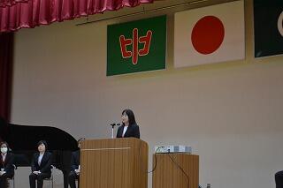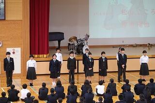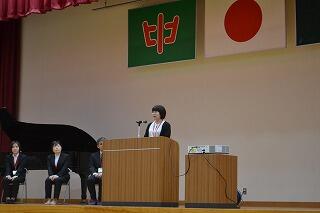 新任式では、転入された先生たちが一人ずつあいさつを行い、最後に代表生徒が歓迎の言葉を述べました。