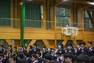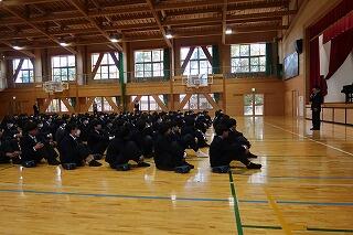 明日は卒業式です。午前中は全校生徒が集まり、体育館で予行練習を行いました。