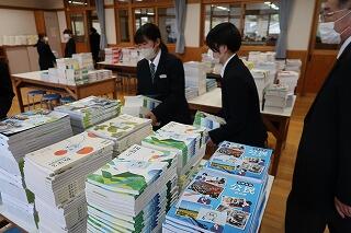 図書館に新刊本が届きました。この中には生徒が希望した本も含まれています。これらの本は来週の定期テスト明けからの貸出に向けて、司書の方がカバーをかけたりバーコードなどを貼ったりして準備していきます。
