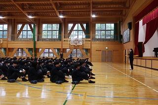 3月26日(火)、今日は修了の日です。朝からよく晴れています。拡大清掃の後、体育館で表彰集会と修了式を行いました。