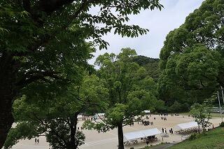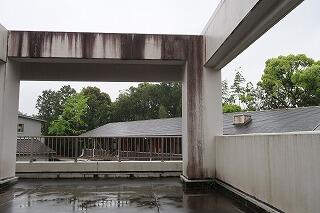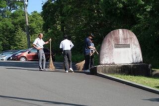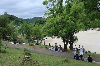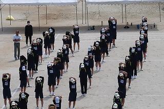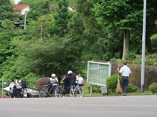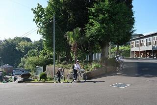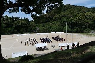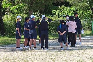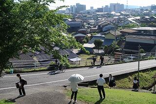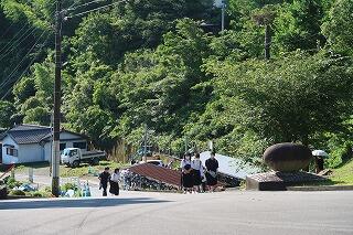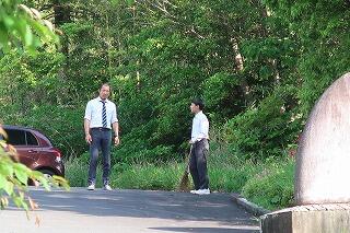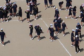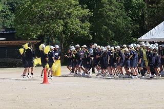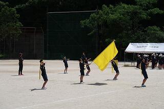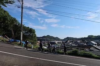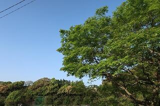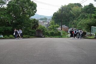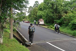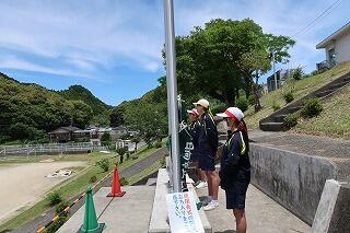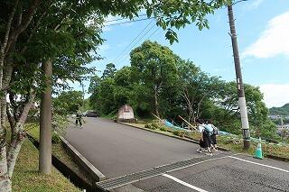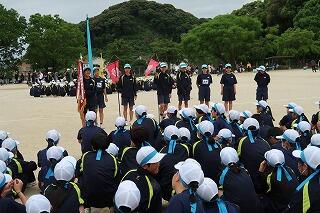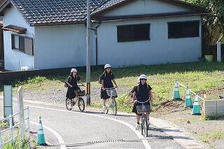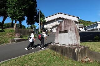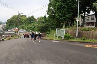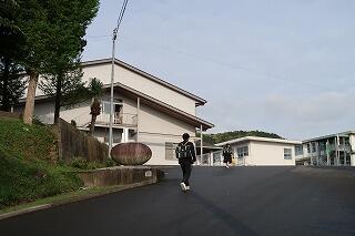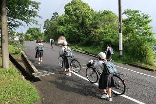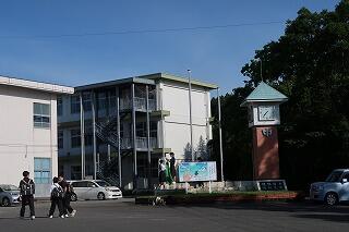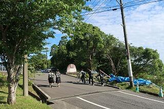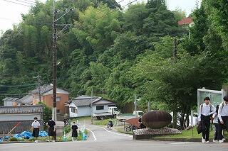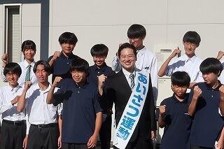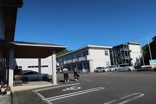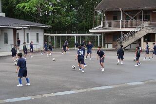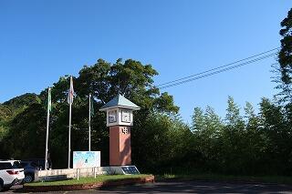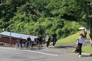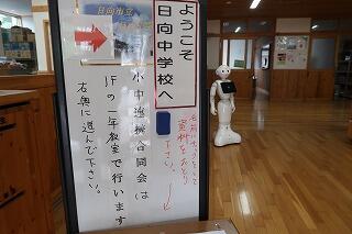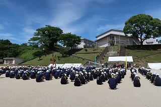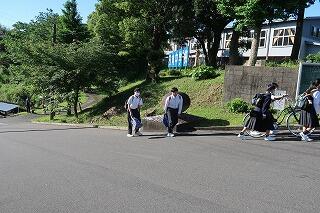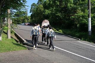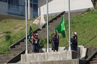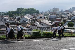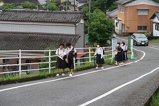 所々に雲はあるものの、日向市は朝からよく晴れています。強い日差しを避けて、サッカー部の生徒があいさつ運動をしています。また美化委員会の生徒は学年で曜日を決めて校門周辺の清掃をしています。ありがとうございます。