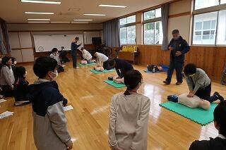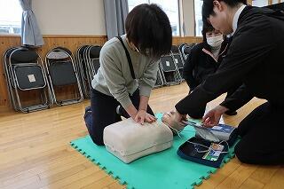 昨日(4月8日、月曜日)の午後、日向市消防本部より講師をお招きして、職員を対象とした「救急救命講習」を行いました。内容は「心肺蘇生法」と「AED」「エピペン」の使用法です。
