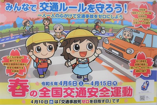 4月6日(土)~15日(月)は春の全国交通安全運動の期間です。登下校だけではなく普段の生活でも交通ルールを守り交通事故をゼロにしていきましょう。