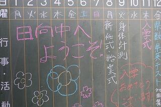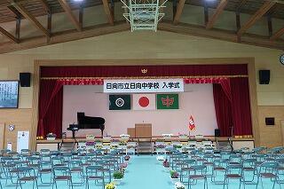 今日は第64回日向中学校入学式です。午前10時から体育館で挙行します。