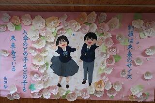 明日は入学式です、新入生のために2・3年生の先輩たちが式場の準備や校内の掃除をしました。