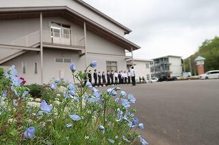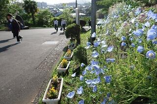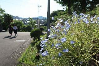 新学期2日目です。今日は朝からよく晴れていて久しぶりに気持ちのよい1日でした。「希望の坂道」を上がってくると、道沿いにツツジやアヤメなどの花が咲いていました。