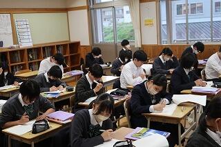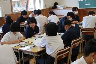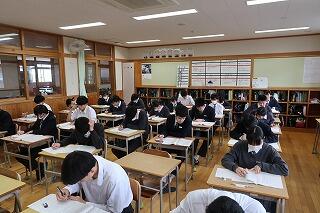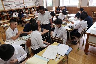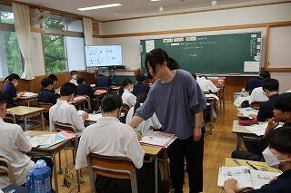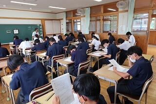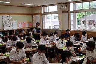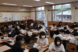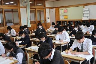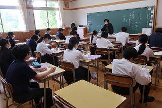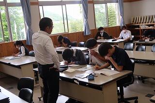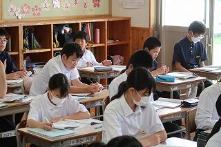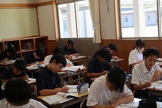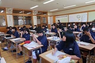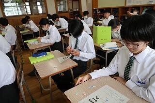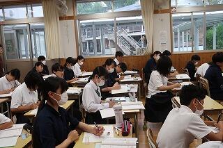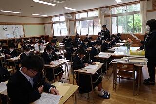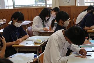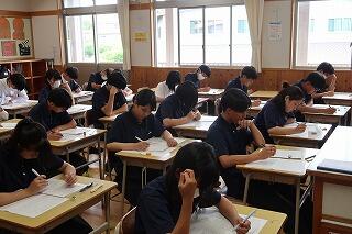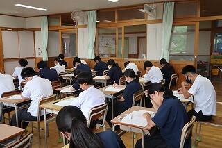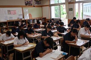 今日(6月18日(火))と明日の2日間にわたって3年生は「地区実力テスト」を受けます。今日は国語・理科・英語、明日は社会・数学で、県立高校入試と同じ時間割です。地区実力テストでは志望する高校・学科を記入するので、テストの点数だけではなく、地区や学校・学科での順位も分かります。