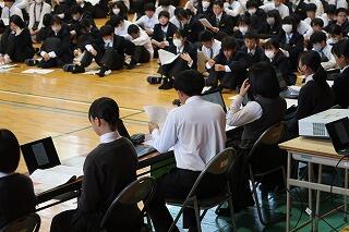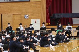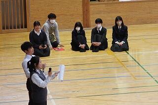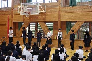 卒業式を2日後に控えた3月14日(木)の放課後、体育館で生徒会の企画による「未成年の主張」を行いました。3年生を中心に自分たちが伝えたいことを個人やグループで全校生徒の前で発表しました。今年で3回目の実施です。
