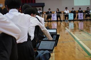 本校では学習者用タブレットを日常的に使い、ICTを活用した教育を積極的に行っています。今回寄贈していただいたモニターを有効的に使い、生徒の学力向上や表現力育成にさらに努めていきたいと思います。クロスコーポレーション様、ありがとうございました。
